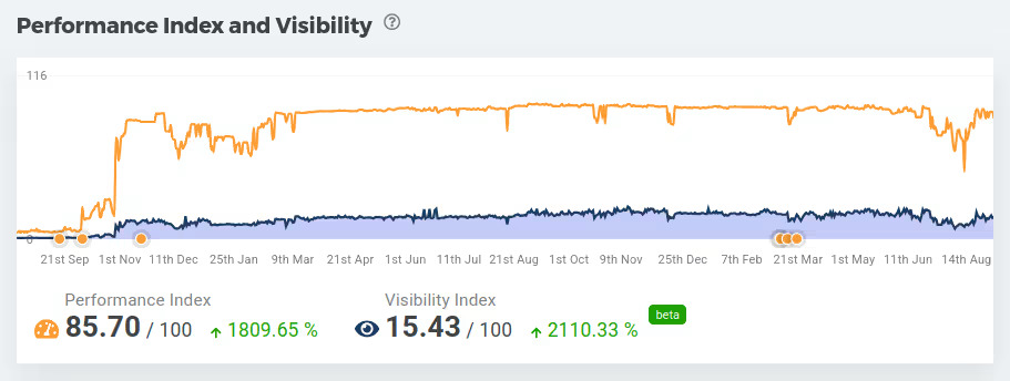 Their Performance Index has improved by 1809.65% with a 2110.33% increase in visibility.