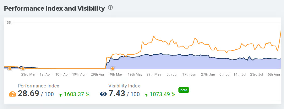 - Visibility Index: 7.43/100 with a 1073.49% increase