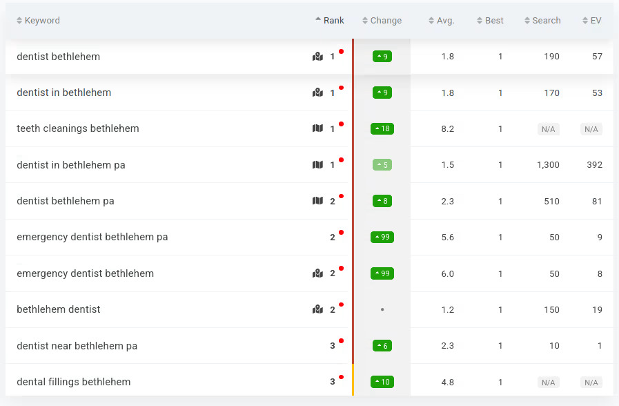 Your monthly reporting will provide your top gaining keyword phrases. Ranking #1 for “family dentist in [your city]” puts you above your competitors.